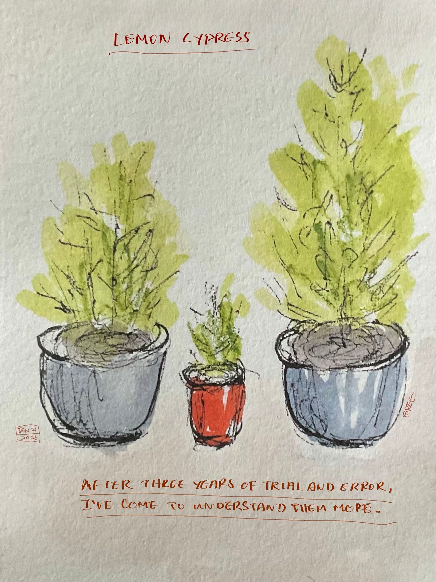 Lemon cypress’s fresh color reminds me of spring, the season of renewal. I keep them indoors during the lifeless winter. But winterizing them is not easy. After three years of trial and error, I’ve come to understand them better.